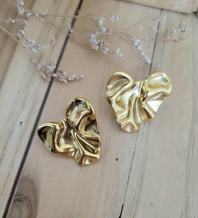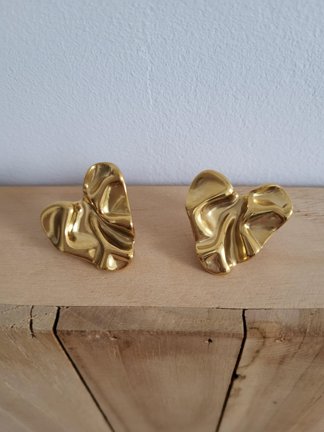 Boucles d'oreilles cœurs effet froissé en acier inoxydable de 25 mm.